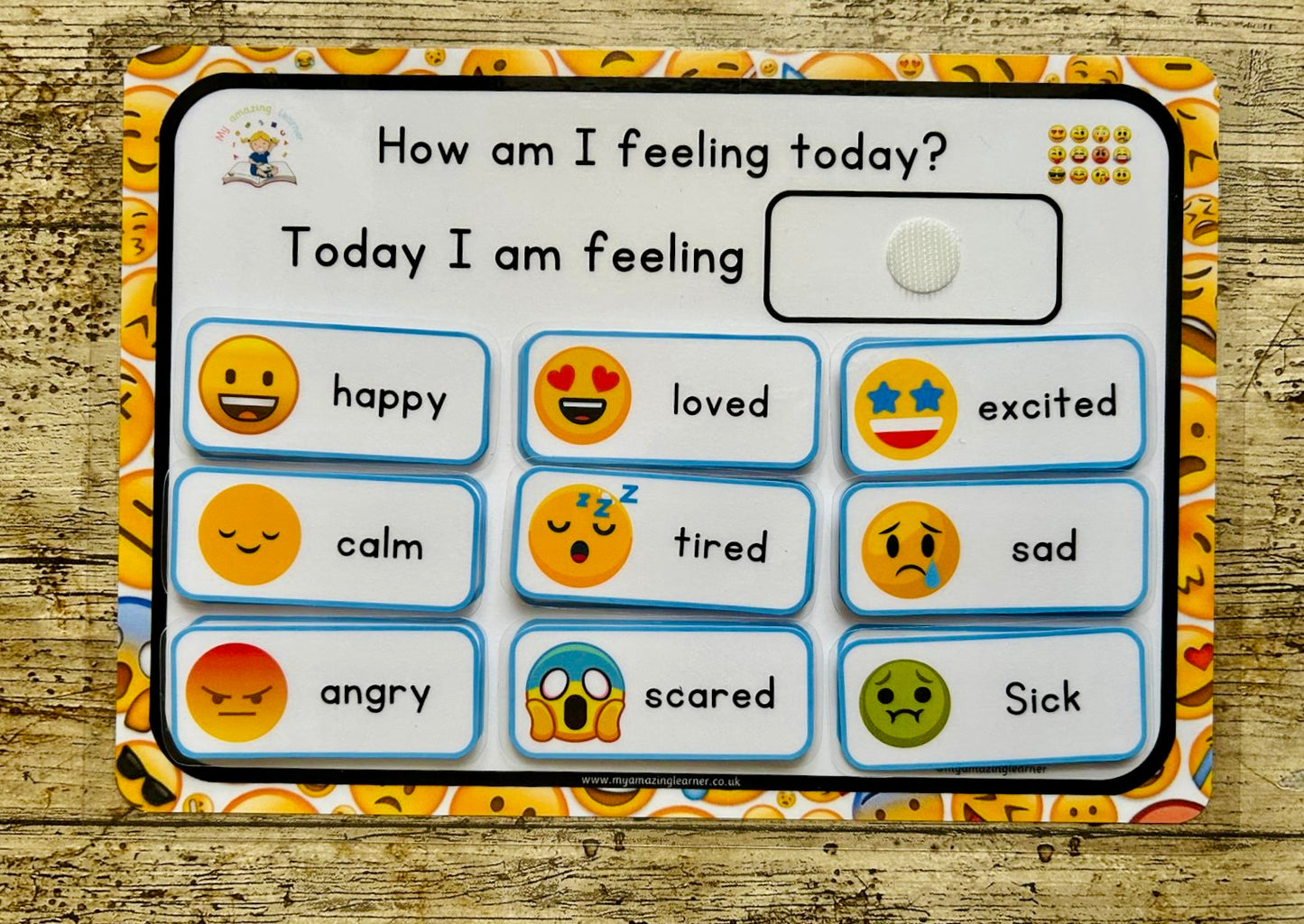 Build your 'Amazing Learner's' emotional intelligence with this Velcro Feelings Mat. This popular product teaches your learner the can be used as a tool for communication. This mat comes with the 9 Feelings displayed on the mat however there is also the option to pick and mix additional feelings which can be added.