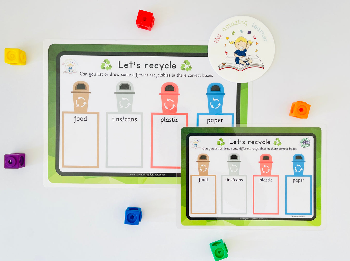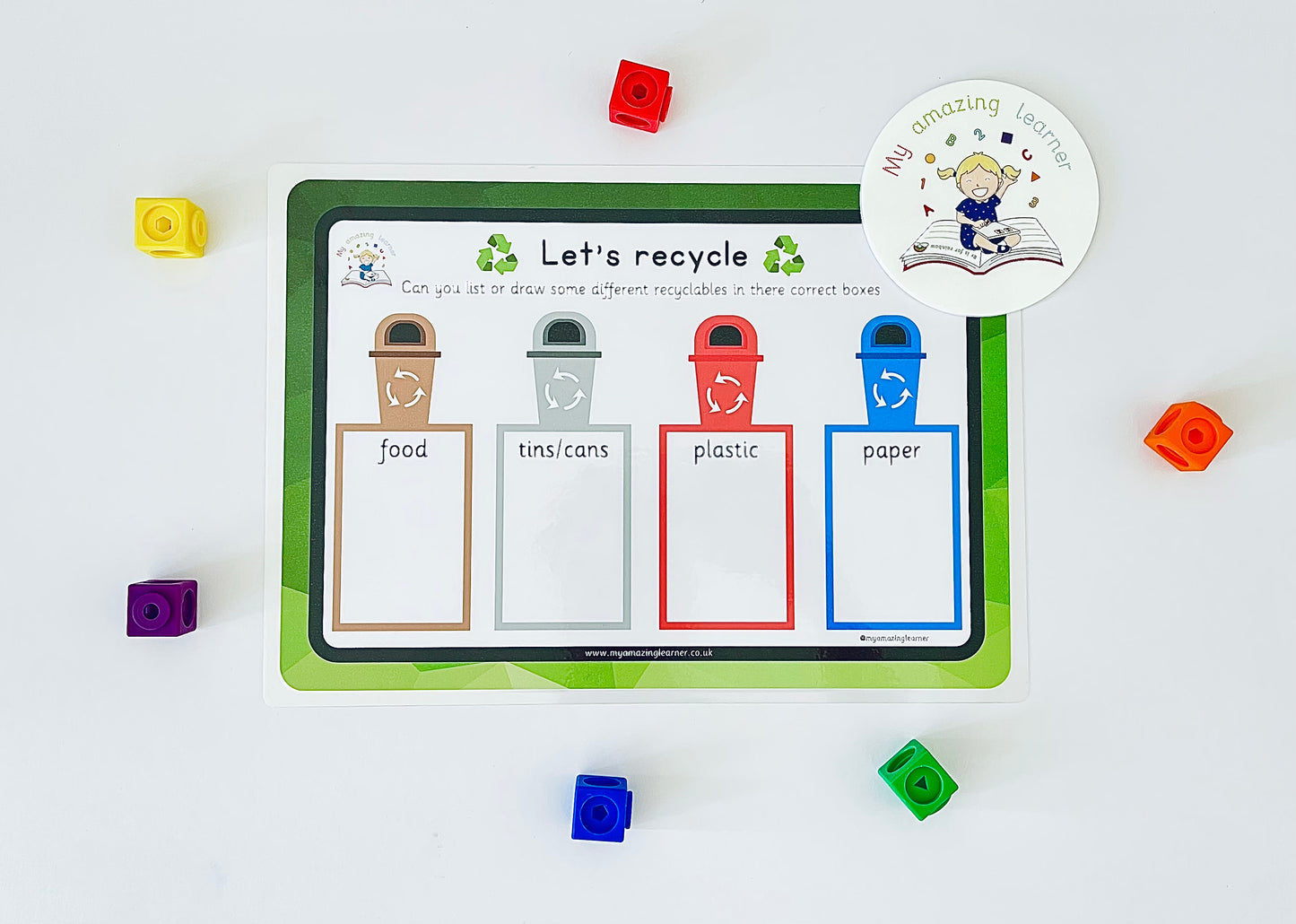 Introduce your 'Amazing learner' to the concept of recycling with Let's Recycle Laminated Worksheet. This specially designed activity will prompt them to consider the importance of recycling and reusing in our environmentally conscious world.