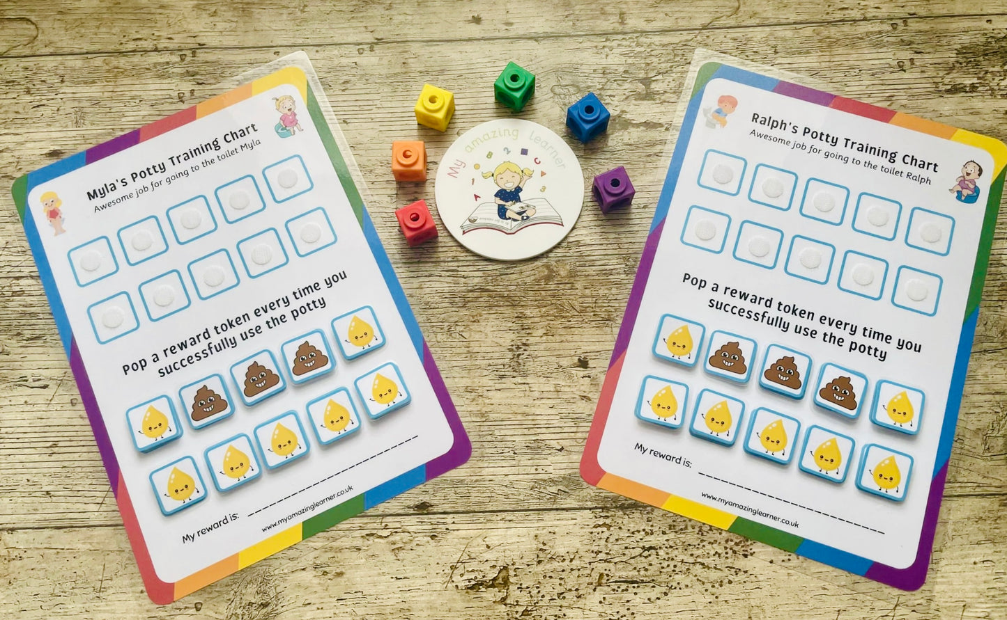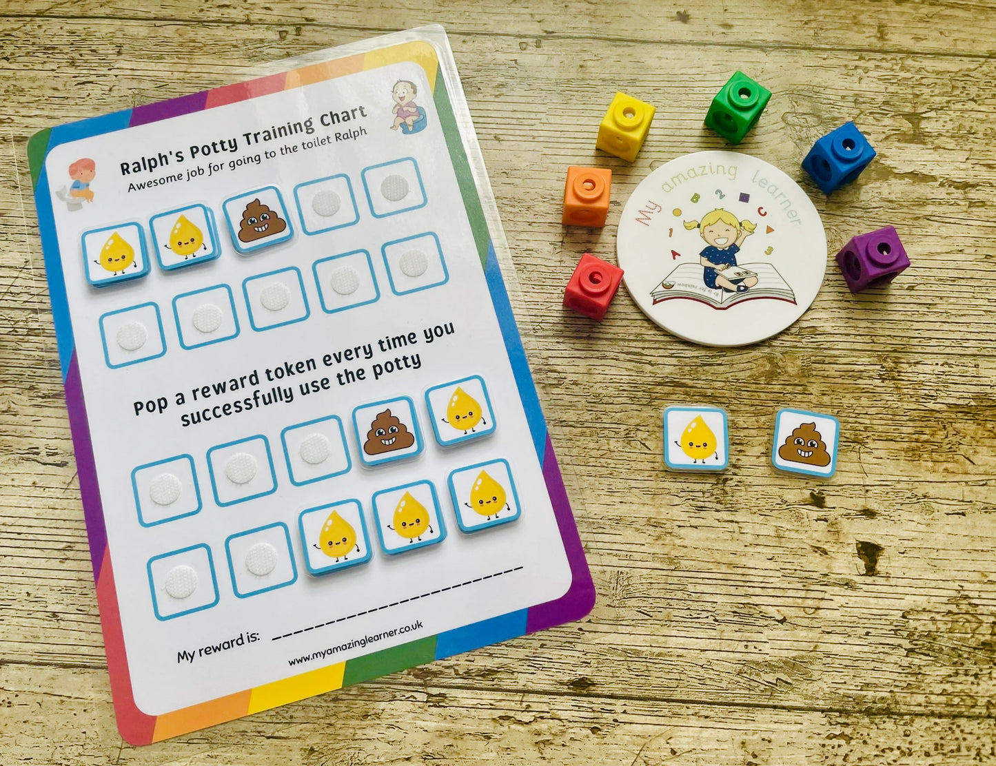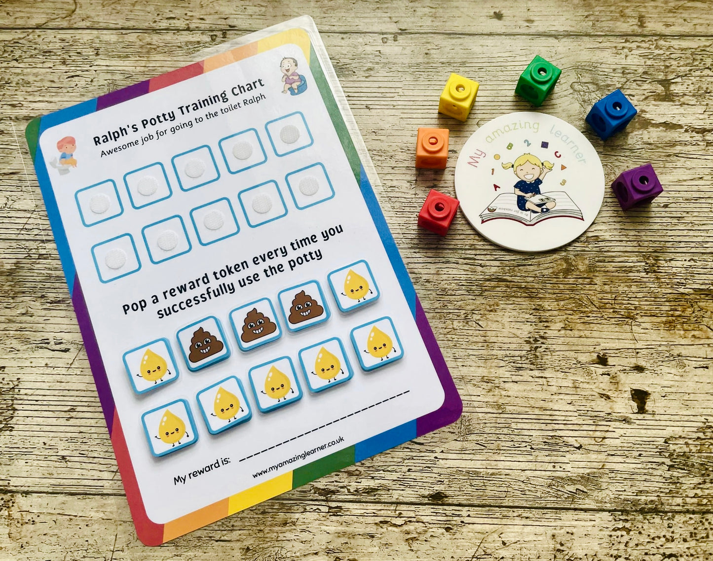 Are you searching for enjoyable and motivating methods to help with potty training? Our potty/toilet training chart offers a fun way to engage your 'Amazing Learner' and successfully encourage them to use the toilet. As a mother of 3 children, I have personally experienced the benefits of routine and reward charts. Our charts are designed to be both fun and inspiring, while also providing a personalised touch. Each chart comes with 10 velcro tokens featuring emojis, standardly with 7 wee and 3 poo. If you have specific preferences, please let us know and we will be happy to create a customised chart.