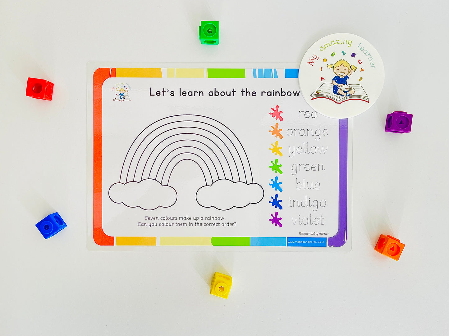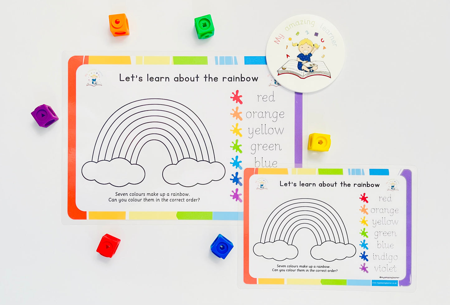 Discover the secrets of a rainbow with our Rainbow Worksheet. These fun, educational, and reusable worksheets are designed for your amazing learners. Use a dry erase pen to uncover how many colours make up a rainbow, their order, and more. This activity sparks great discussions and helps children develop their understanding of rainbows. With the option for A4 or A5 sizing, and printed on durable 160gsm card and 250 micron laminate, our Rainbow Worksheet is perfect for at-home use or on-the-go learning. Expand your Amazing Learner folder with our wide range of worksheets.
